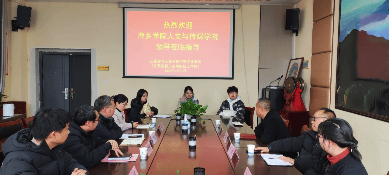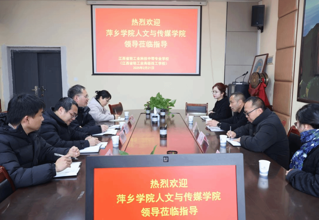 2月21日上午,为进一步深化学科教学与就业实习的联动机制,学院党委副书记(主持工作)刘治跃、副院长(主持工作)凌焰率队前往江西省轻工业科技中等专业学校(江西省轻工业高级技工学校)进行交流学习。此次访问旨在就访企拓岗、实习实训建设等重要议题进行深入探讨与合作洽谈。该校党委委员、纪委书记贺楚雄,教务科科长周爱军,公共教育部系主任施琦及思政教研室主任刘清等相关负责人,学院就业科科长罗珺、历史教研室主任邓翔、顶岗实习学生代表参加了此次交流会议。