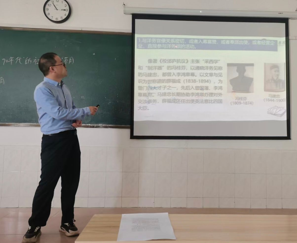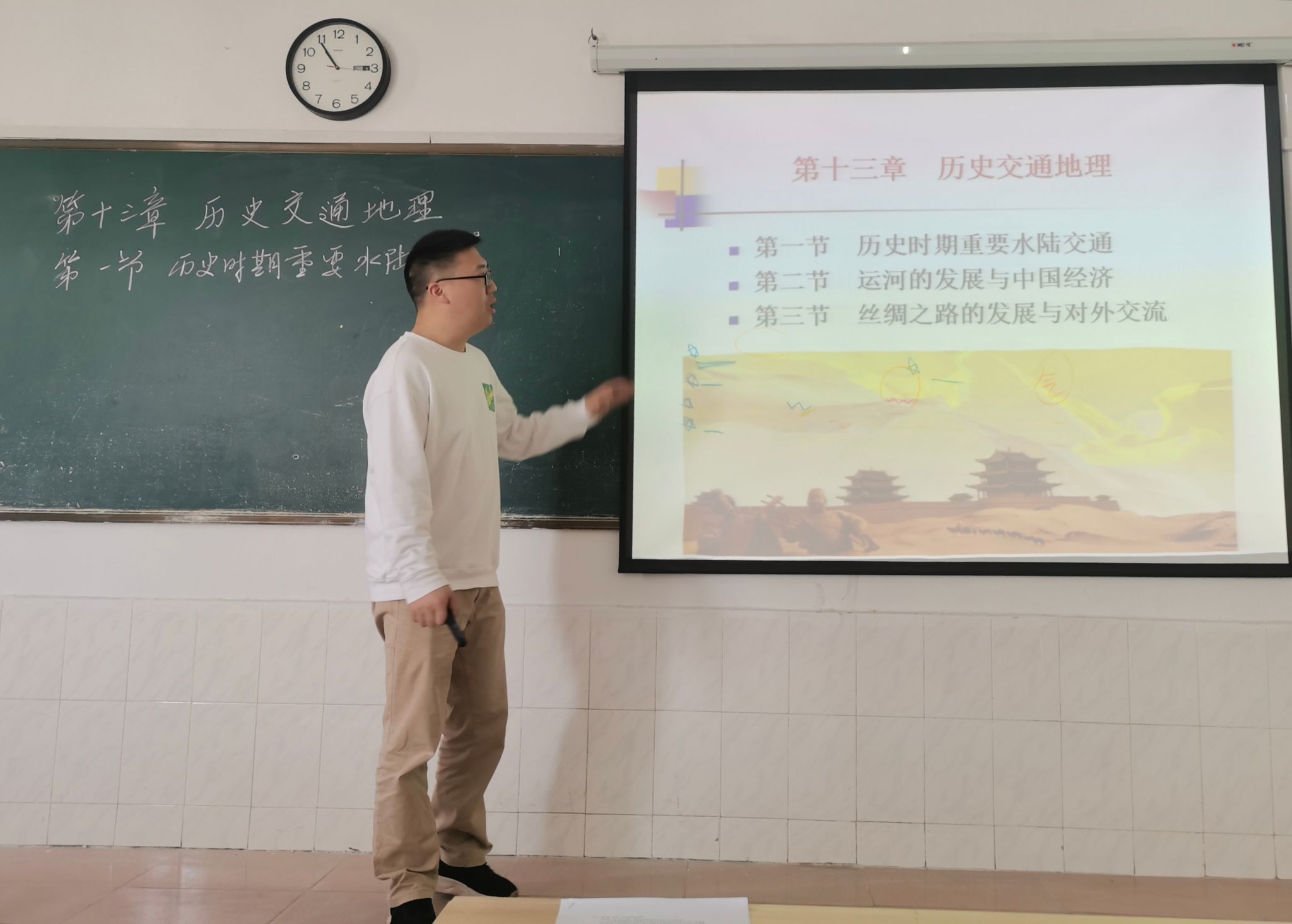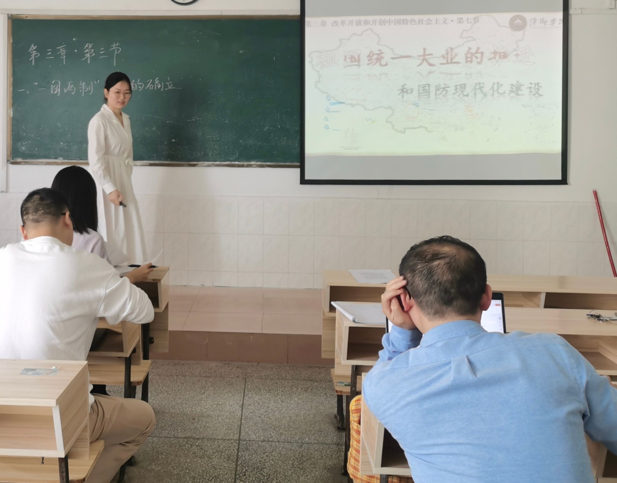 张辉海围绕历史交通地理展开授课,从历史时期重要水路交通、运河的发展与中国经济、丝绸之路的发展与对外交流三方面进行详细分析,展现了交通地理在历史中的变迁过程。王淼华就20世纪50年代至90年代的社会思潮进行讲解,细致阐述这一时期的思想演变,并深入分析其成因。丁婷以"一国两制"的确立为切入点,系统分析了祖国统一与国防现代化的进程。教研室邓翔、黄虎、龚正良、蔺洁等老师也就各自课程内容开展磨课教研。