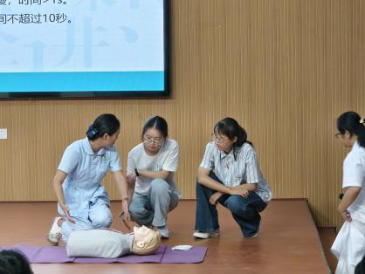 为增强新生急救知识与技能,72886必赢欢迎光临特邀萍乡市人民医院医护人员开展了一场生命安全教育急救培训。医护人员生动详实地介绍了心脏骤停的识别方法、基本急救流程、心肺复苏的操作步骤及“黄金4分钟”的关键意义。她着重指出紧急情况下及时识别与呼救的重要性,并演示了胸外按压、开放气道、人工呼吸的具体操作。