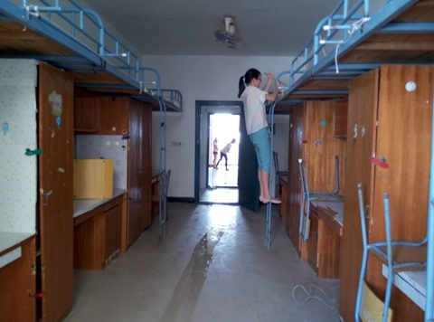 活动开始前,同学们自带扫把、抹布在跬步楼和八栋、九栋楼下集合并进行了工作安排。清理开始后,同学们三两一群,热火朝天开始清扫。同学们细心的用抹布地擦掉桌子上的灰尘,边边角角都不放过。拿着扫把的同学也不辞辛劳地爬上床铺,把床铺上的垃圾及天花板上蜘蛛网打扫干净。还有的同学踮着脚尖擦着窗户上 的灰尘。同学拿着拖把把地面拖了一遍又一遍,直至干干净净。经过一个多小时的清理活动,在同学们的辛勤劳动下新生教室和寝室重现出干净整洁的面貌。为即将到来的新同学提供整洁、干净的学习和住宿环境。