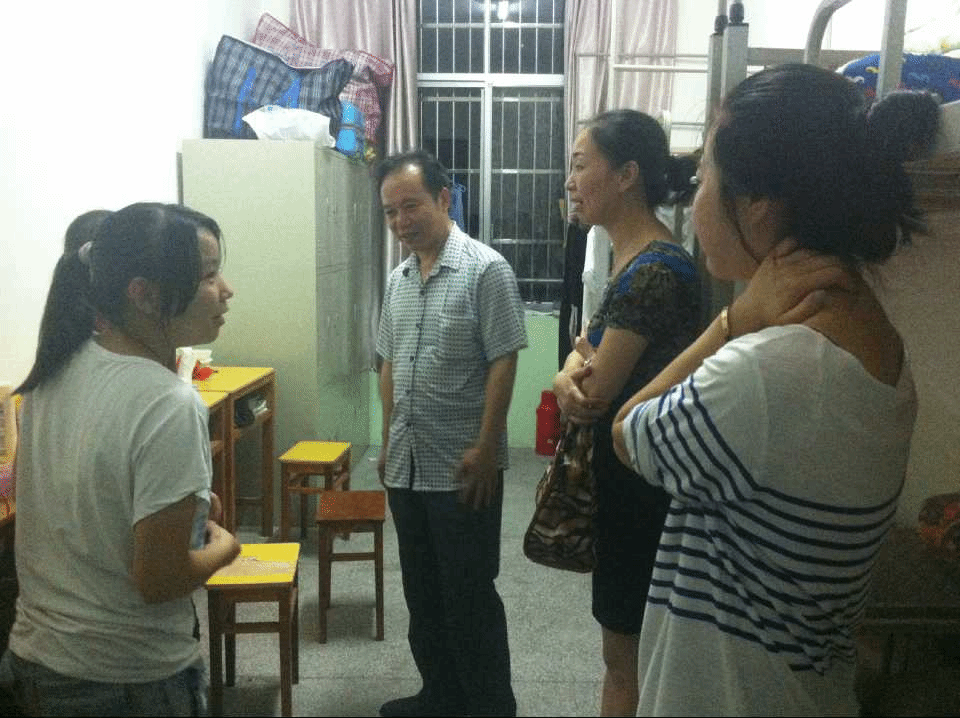 为了解新生到校及在校的生活情况,9月6日晚,文学院院长刘建明,副院长陈敢,团总支书记黄如光,班主任周利萍老师及辅导员江山、张泱央老师来到新生宿舍看望15级新生。