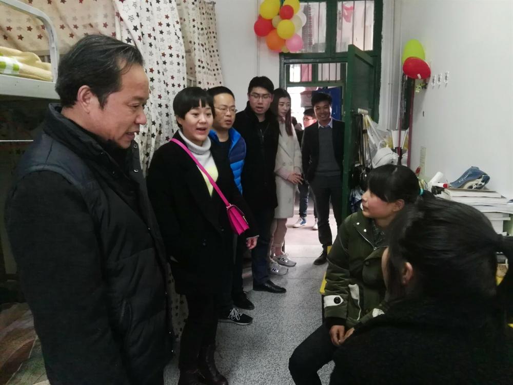 领导老师分别走访了多维楼,8栋学生寝室,为刚刚到校的同学们送去了温暖和关怀。首先,老师们前往了多维楼宿舍为学子们送去了新春的祝福。师生亲切的话着家常,寝室里不时传来欢声笑语,洋溢着师生间的融融情谊。随后,老师们来到了8栋宿舍,老师们对男生十分关心,不仅亲切询问了他们对上学期生活和学习的感想以及今后的规划,还嘱咐大家注意天气变化,注意保暖注意安全。刘院长在临走前还特意叮嘱大家:“不仅要努力学习,也要学会照顾自己,平时多给家里打打电话,问候一声,报个平安。”