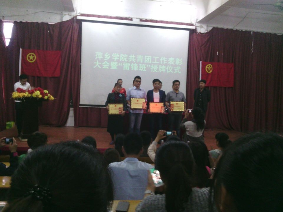 会议以表彰系部共青团先进集体及给“雷锋班”获奖班级授牌为主题。其中,我系以优良的成绩荣获“萍乡学院五四红旗团总支”称号,12中本班及13中本3班荣获“雷锋班”荣誉称号。