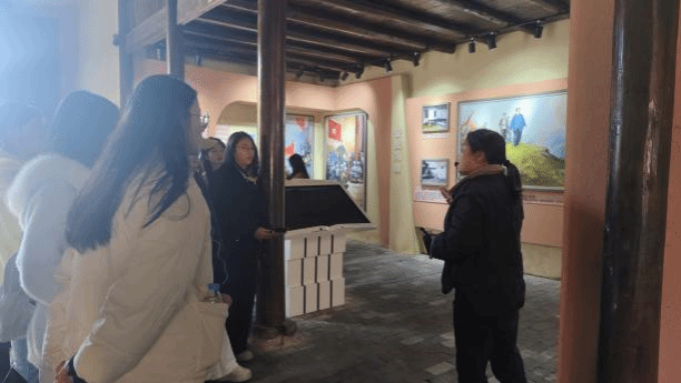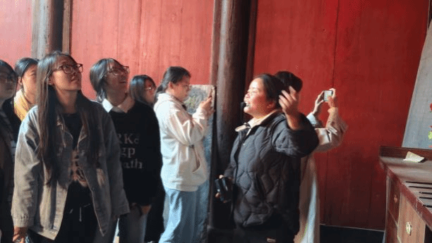 而在高滩村初祖祠中,讲解员为学生们介绍了高滩村的家族历史、村庄发展历程及王佐支部决议案。学生们通过观摩祠内的建筑构件与文献资料,了解先辈的乡土情感与爱国精神。