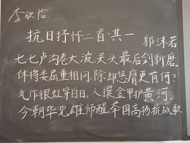 大赛设粉笔、硬笔、毛笔三个组别,选手们于不同赛场挥毫洒墨,共呈汉字之美。粉笔字赛场,选手们书写郭沫若《抗日抒怀二首·其一》,“今朝毕见雄狮醒,举国高扬抗战歌”的诗句在黑板上端正有力,笔锋间尽显家国豪情。硬笔字赛场,选手们誊写艾青《向太阳》节选,激昂的文字跃然纸上;“我们笑得像太阳”借工整字迹,传递出蓬勃向上的力量。毛笔字赛场,选手们围绕“传承文脉、致敬英魂”的主题自由创作,于笔墨流转间尽显书法艺术的独特魅力。全场选手凝神聚气,在一方宣纸、一页稿纸、一面黑板之上,共同演绎着汉字书法之美。经选手现场展示与评委专业评审,本届书法比赛各项目获奖结果已揭晓:粉笔字项目中,张书纯芳荣获一等奖,黄朝艺、严翊鸣获得二等奖,刘煜、徐芝慧、叶静茹获得三等奖;硬笔字项目中,叶静茹获得一等奖,冯美青、李怡思缕获得二等奖,卢嫣媛、胡家辉、黄舒敏获得三等奖;毛笔字项目中,刘煜斩获一等奖,张启业、周素云获得二等奖,徐佳丽、李怡思缕、严翊鸣获得三等奖。