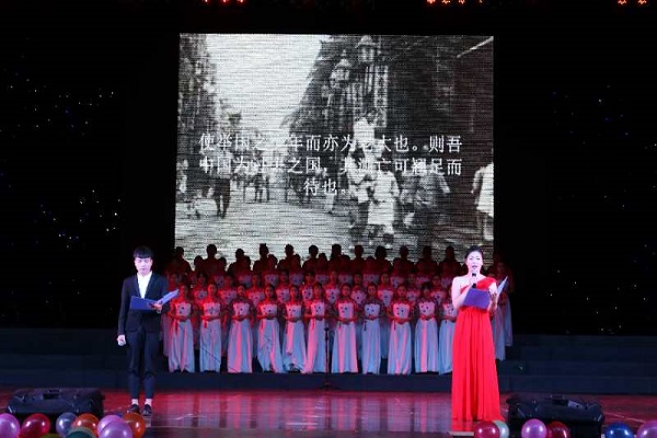 晚会第三篇章《祝福祖国》在五星红旗飘扬翩飞中上演,独唱《红旗飘飘》振奋人心,凝聚真情。小品«恰同学少年»用诙谐幽默的语言和生动滑稽的肢体动作纪念曾经同窗的热血青春,牵系不忘师生情的珍贵感念。古典舞《雨霖铃》在轻歌曼舞中流淌古典古韵的情思,寄托古今相连的情怀。最后,朗诵《少年中国说》与合唱《国家》激情彭拜,完美诠释了浓厚的家国情怀。晚会在热烈的掌声中落下帷幕。
