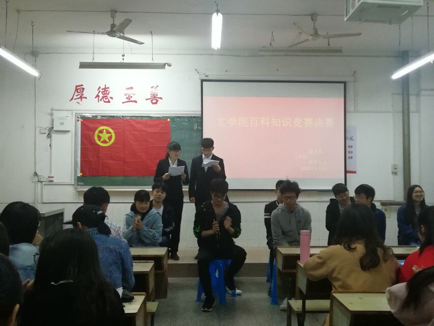 4月8日晚,由文学院团总支学生分会主办的百科知识竞赛决赛在跬步楼1406教室举行。文学院团总支书记黄如光、部分系干及各班观众代表一同观看了比赛。
