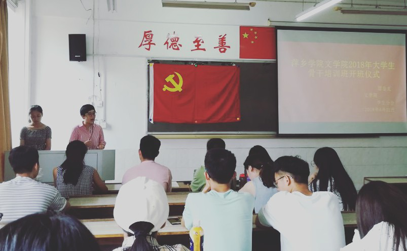 22日下午,文学院大学生骨干培训班开班仪式在跬步楼1406教室举行。文学院党总支副书记孙琦、分团委书记黄如光及所有参加培训成员参加开班仪式,团总支副书记左慧主持仪式。