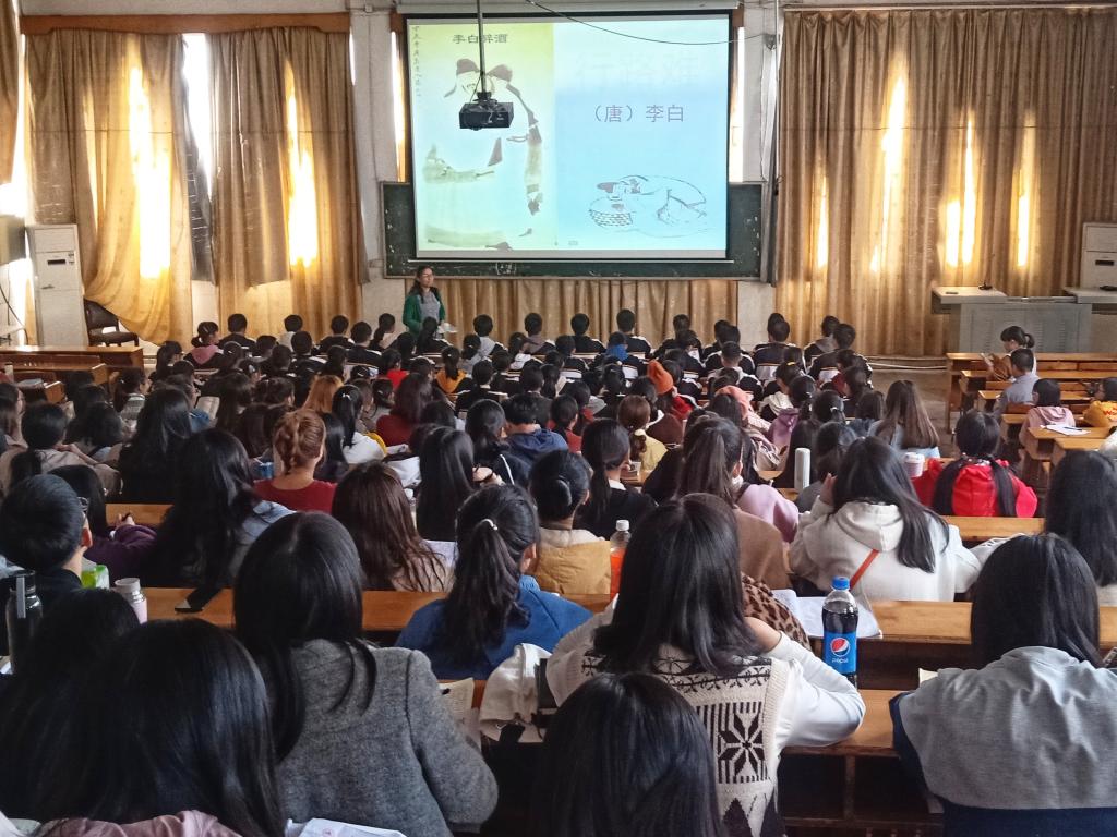 为提高学生试讲能力和教学能力,11月19日下午14:00,72886必赢欢迎光临特邀安源中学文莉在跬步楼1101教室开展公开示范课——《行路难》。本次公开示范课由教学科研科科长孙海龙主持,安源中学部分学生及72886必赢欢迎光临18级全体同学参与并观摩。