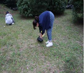 到达场地后,各部门代表自行组队进入林中进行清理活动;有的小组负责捡拾遗落的矿泉水瓶等垃圾;有的小组负责拿垃圾袋等工具物品。经过半个小时的努力,“五四青年林”焕然一新。各部门代表用自己的实际行动为学校增添一份清新,一抹明亮。最后,全体合影留恋。