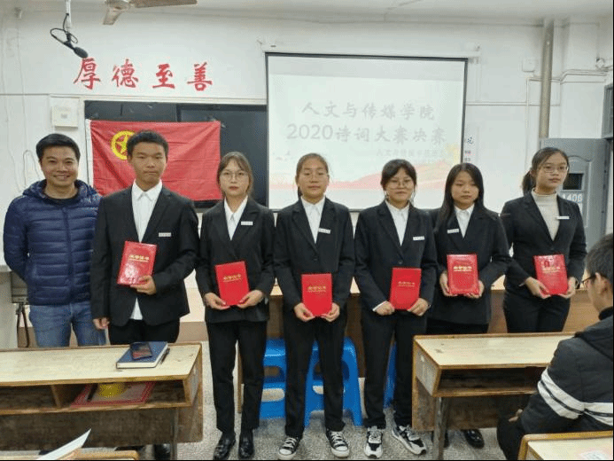 本次比赛共分为基础问答、风险抢答、飞花令、古诗接龙等四个环节,各环节环环相扣,循序渐进。比赛场上,参赛选手严守比赛规则,展现了丰富的知识储备。选手们双手紧贴抢答器,力争取得好成绩。经过激烈地比拼,最终潘菲芳同学获得一等奖,尹康璨、杨漂同学获得二等奖,钟琪、陈丽珍、张国风同学获得三等奖。黄如光上台致辞,他表示,希望同学们能够了解、熟悉中华优秀文化传统,与诗词同行,与时代接轨。