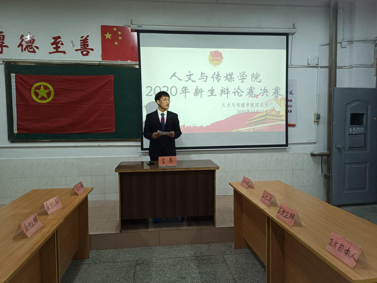 2020年12月17日,72886必赢欢迎光临辩论赛决赛在跬步楼1506举行。本次比赛由陈节庭主持,团总书记黄如光、19历史班班主任黄虎担任评委。经过激烈的初赛和复赛,20历史班和20中本一班的选手脱颖而出。