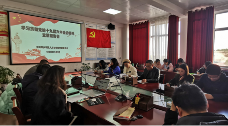 为深入学习贯彻党的十九届六中全会精神,12月2日,学院在1404召开党的十九届六中全会精神宣讲会,会上邀请了学院兼职辅导员甘希作辅导讲课。根据学校安排,马克思主义学院陈尧嘉、段杉列席会议。党委书记吴文彬主持宣讲会,学院党委理论学习中心组全体成员、师生党员参加宣讲会。