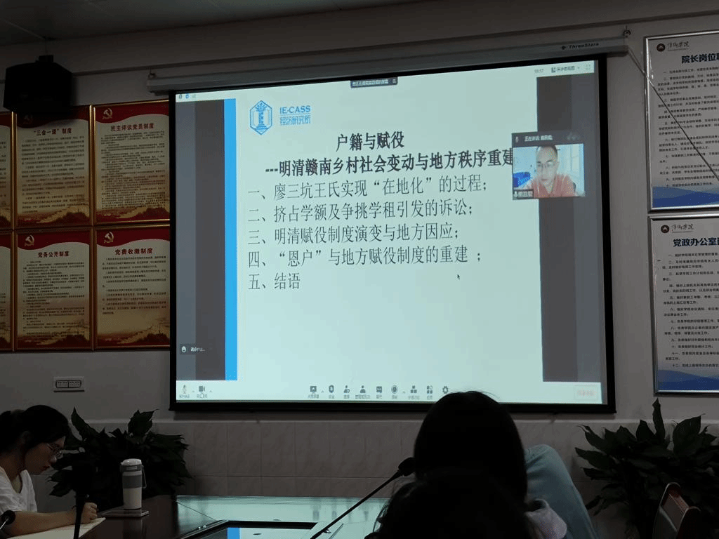 6月1日下午,72886必赢欢迎光临于跬步楼1404会议室召开了关于“户籍与赋役-清初赣南乡村社会变动与地方秩序重建”的线上讲座。此次讲座由中国社会科学院经济研究所的熊昌锟导师主讲,72886必赢欢迎光临副院长凌焰主持,20级历史学专业全体学生参加。