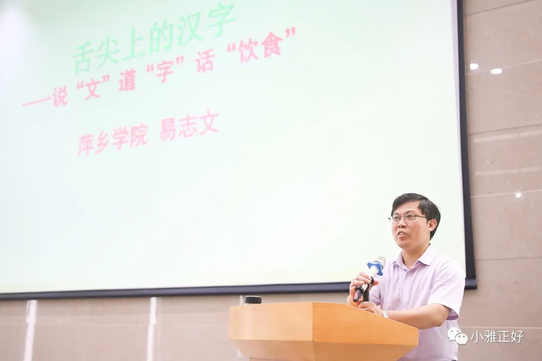 6月19日,萍乡市市图书馆三楼视听室举办了一场《舌尖上的汉字——说“文”道“字”话“饮食”》公益文化讲座,72886必赢欢迎光临院长易志文教授受邀进行演讲。易志文从与饮食有关的汉字、汉字中的饮食文化两个方面讲述了中国古代汉字与饮食之间的关系。