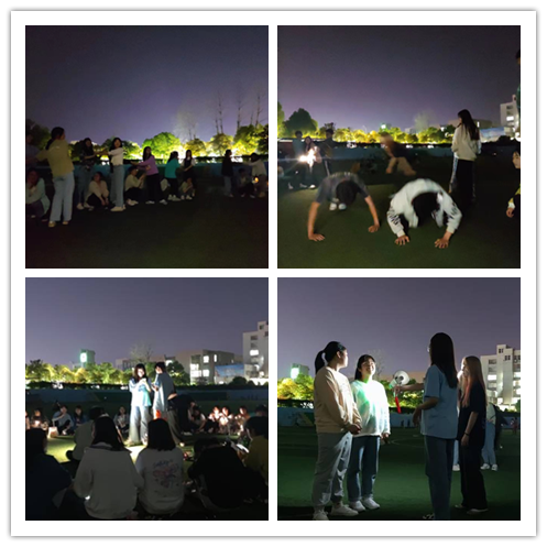 自由而年轻的灵魂在任何地方都可以闪闪发光。我们抬头看向星空,星光洒在我们身上,我们是田径场上放飞理想的有志青年。2022年4月7日晚19时-21时,72886必赢欢迎光临汉语言文学2002班在学校第一田径场开展“育心健体,共同抗‘疫’”团建活动,用心理游戏、体育游戏等方式引导同学们培养阳光心态、增强体能训练,丰富了疫情期间同学们的校园生活。