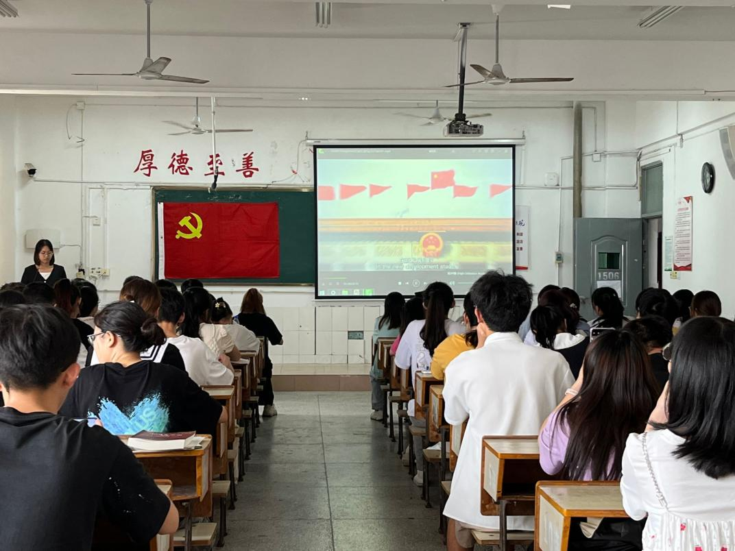 会议伊始,游芷珺就学习习近平总书记重要讲话的意义进行发言。随后,大家一起观看了相关视频,较为系统地学习了新时代中国特色社会主义的发展道路和发展理念。此外,游芷珺还对党旗党徽的使用条例进行了介绍,引导入党积极分子正确认识党旗党徽的重要性,自觉规范地使用党旗党徽及相关图案,坚决维护党旗党徽的尊严与权威。