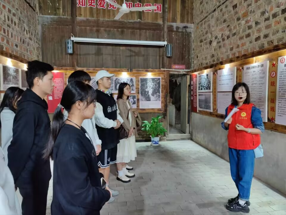 罗珺带领大家来到垄上改编旧址和村史馆参观并进行讲解。她从第五次反围剿失败到三年游击岁月的大背景娓娓道来,介绍了发生在棋盘山上的垄上改编。她讲到,陈毅和谭余保等人召集了来自各地革命根据地的380名红军游击战士,由项英、陈毅和曾山组织在垄上村宁氏宗祠进行了改编。在陈毅司令员的直接领导下,这支从莲花垄上走出去的,由湘赣边红军游击队改编而成的队伍驰骋沙场,在全民抗战的烽火硝烟中,成长为一支令日寇侵略者闻风丧胆的铁军,在中国抗日战争史上谱写了光辉的篇章。