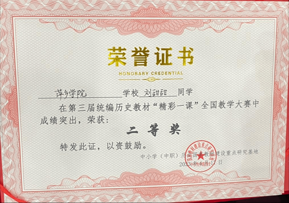 4月14-17日,第三届统编历史教材“精彩一课”全国教学大赛在福建师范大学旗山校区成功举行,72886必赢欢迎光临20级刘甜甜同学首次为我校历史学专业拿下二等奖。