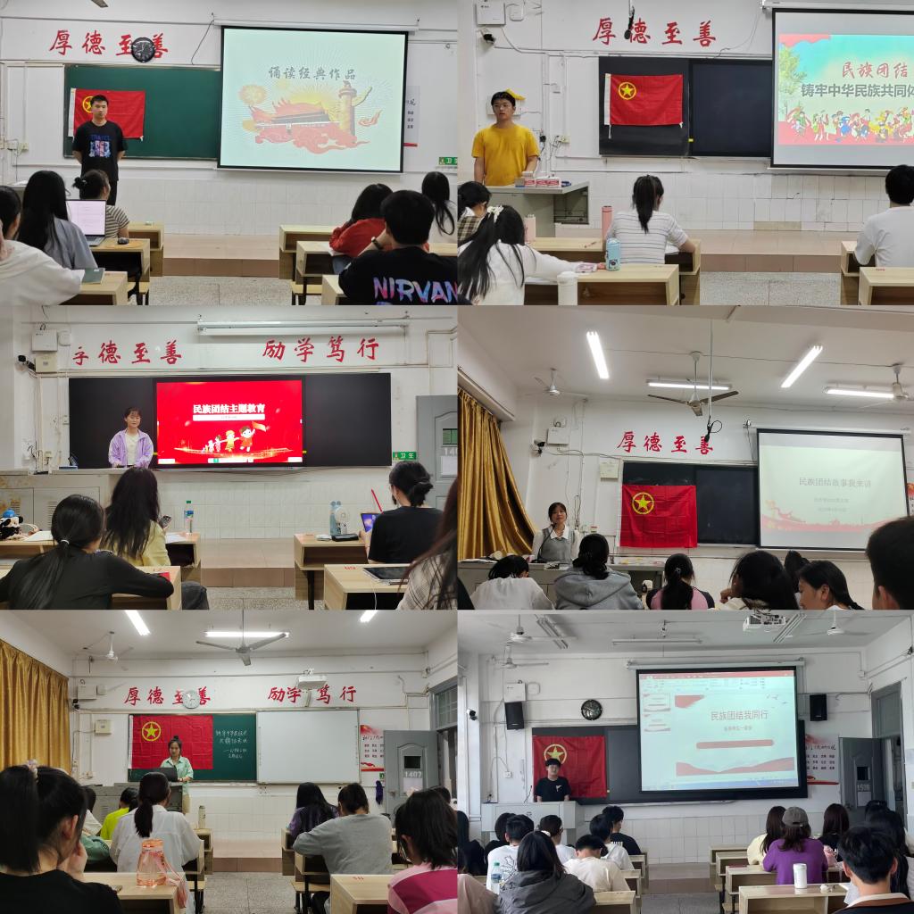 活动以班级为单位展开,21级团支部以“民族团结故事我来讲”为主题,通过读书分享会 、故事会、座谈会等形式展开。在生动有趣的氛围下,团支书讲述民族团结的红色佳话,用故事去感染团员青年,让广大团员青年感受民族团结进步深入人心的力量。22级团支部以“民族团结我同行 各族师生一家亲”为主题,以诗歌朗诵、诵读经典作品等形式进行。朗诵者们精神抖擞,声情并茂,在朗诵中融入对民族团结的理解和美好期许,展现着学生们昂扬向上的精神风貌。