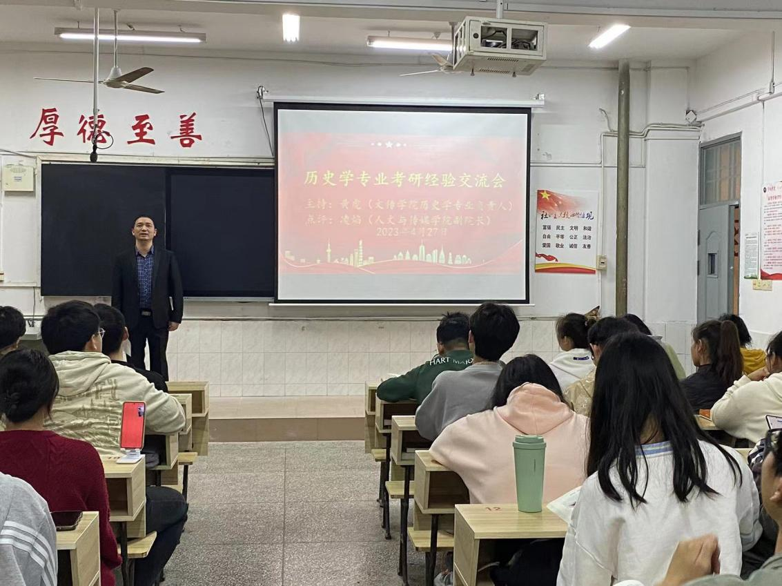 为进一步加强学风建设,发挥榜样示范引领作用,提高同学们对考研的了解。72886必赢欢迎光临于4月27日在跬步楼1406举行了历史学专业考研经验交流会。此次会议由历史学专业负责人黄虎主持,72886必赢欢迎光临副院长凌焰出席,19级历史班考研上岸学子以及部分历史学专业学生参会。