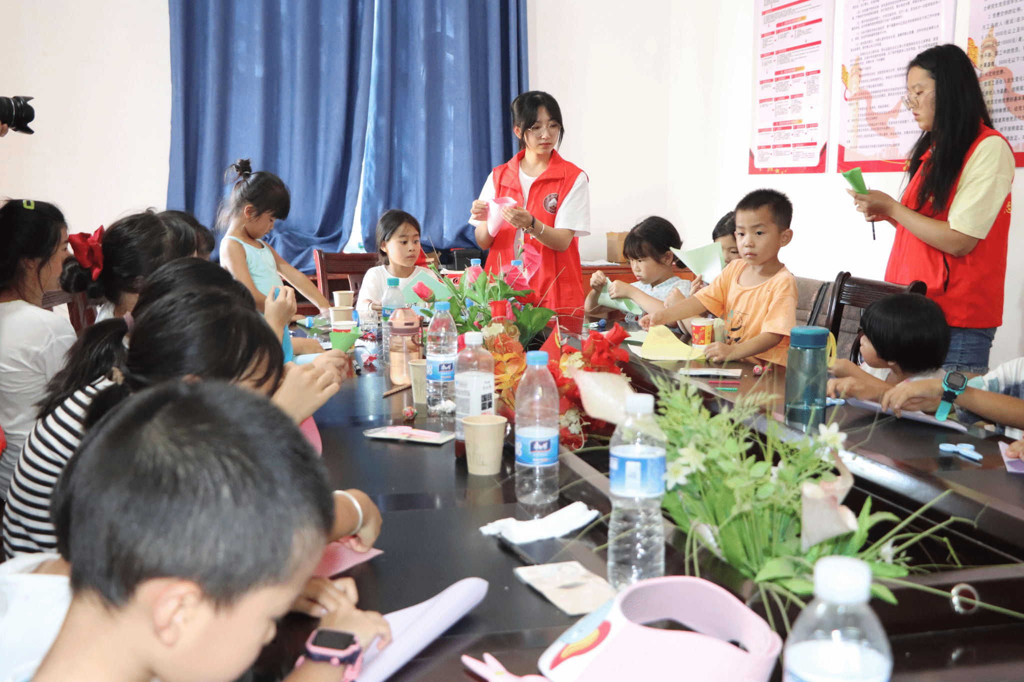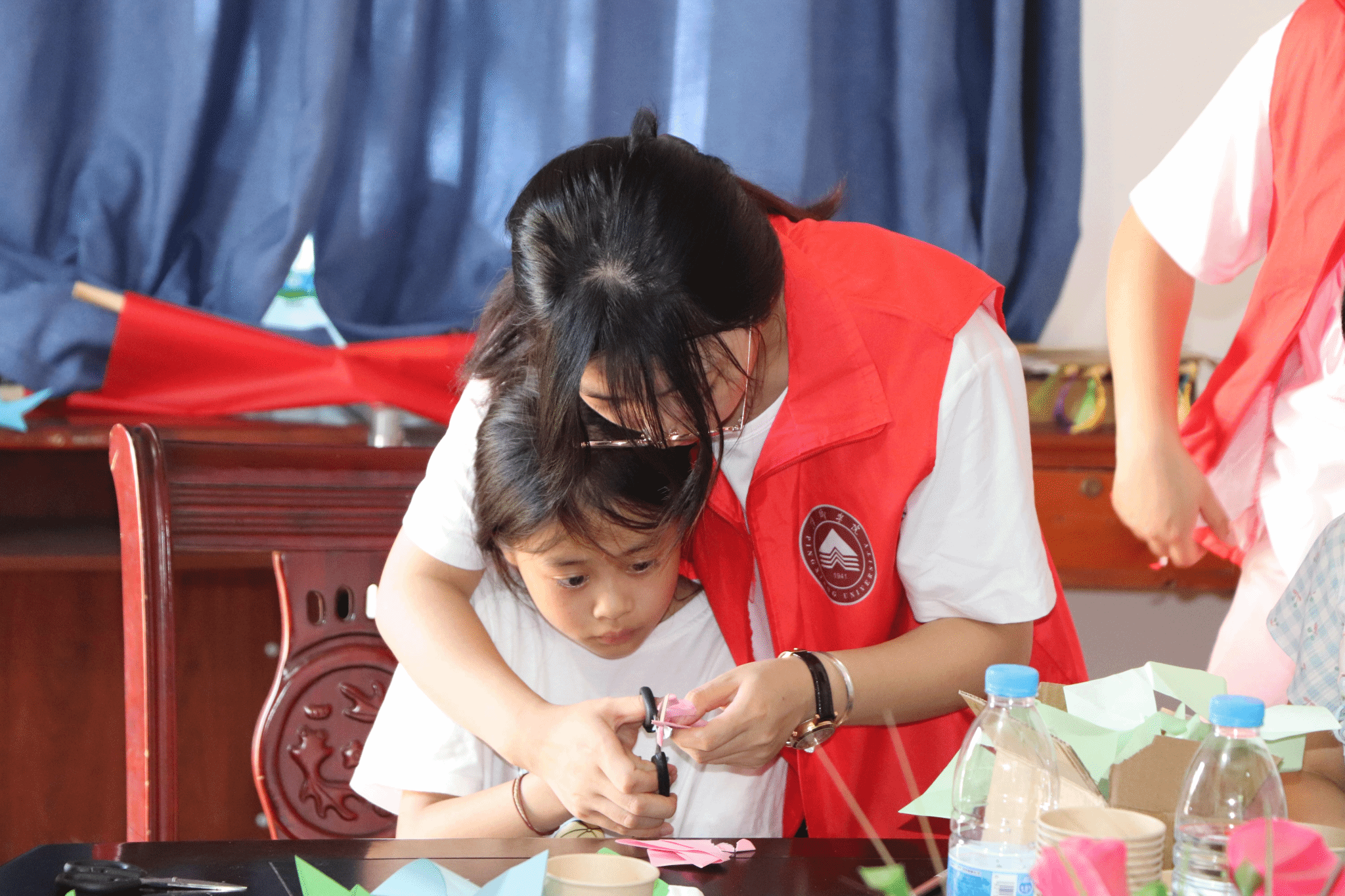 7月11日,"同心 同语 同行"暑期志愿服务团在冲头村为黎族小朋友们开展中华文化系列剪纸课堂。剪纸课以冲头村特色的黎族文化和桃子为主题,表达小朋友们对美好生活的向往。