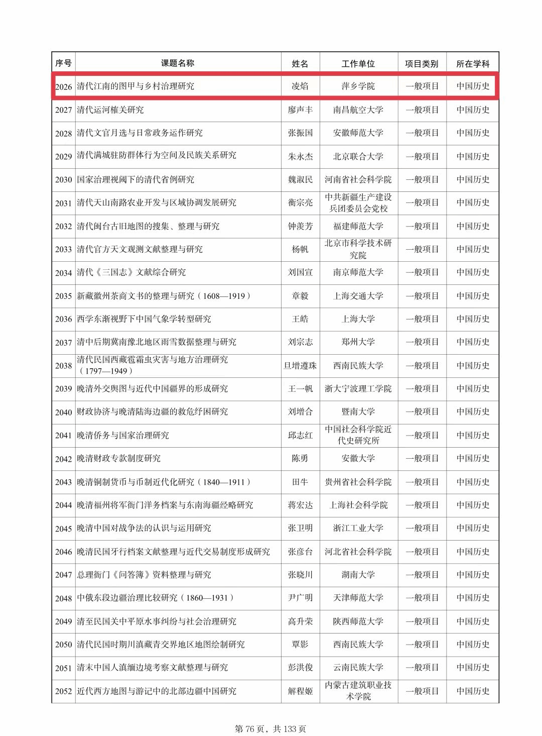 近日,全国哲学社会科学工作办公室公布了2023年国家社科基金年度项目和青年项目立项名单,其中,72886必赢欢迎光临副院长凌焰博士主持的《清代江南的图甲与乡村治理研究》获批国家社科基金一般项目立项。