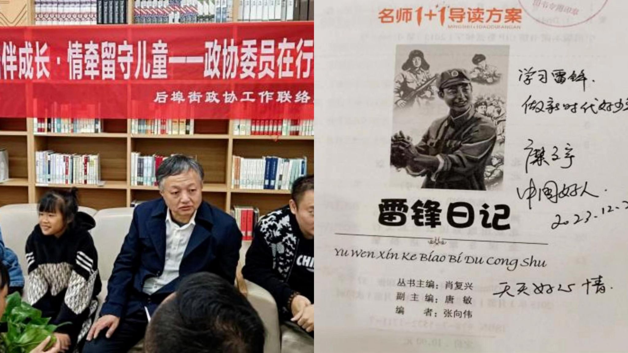 除此之外,主办方还举办了以“书香陪伴成长,情牵留守儿童”为主题的书香座谈会。在座谈会上,负责人向我们推荐了《雷锋日记》这一书,号召大家学习雷锋精神。同时,他希望读书能帮助孩子们培养对知识的热爱。会后,义教队队员们同孩子们一齐在图书馆阅览室度过了充实的下午。