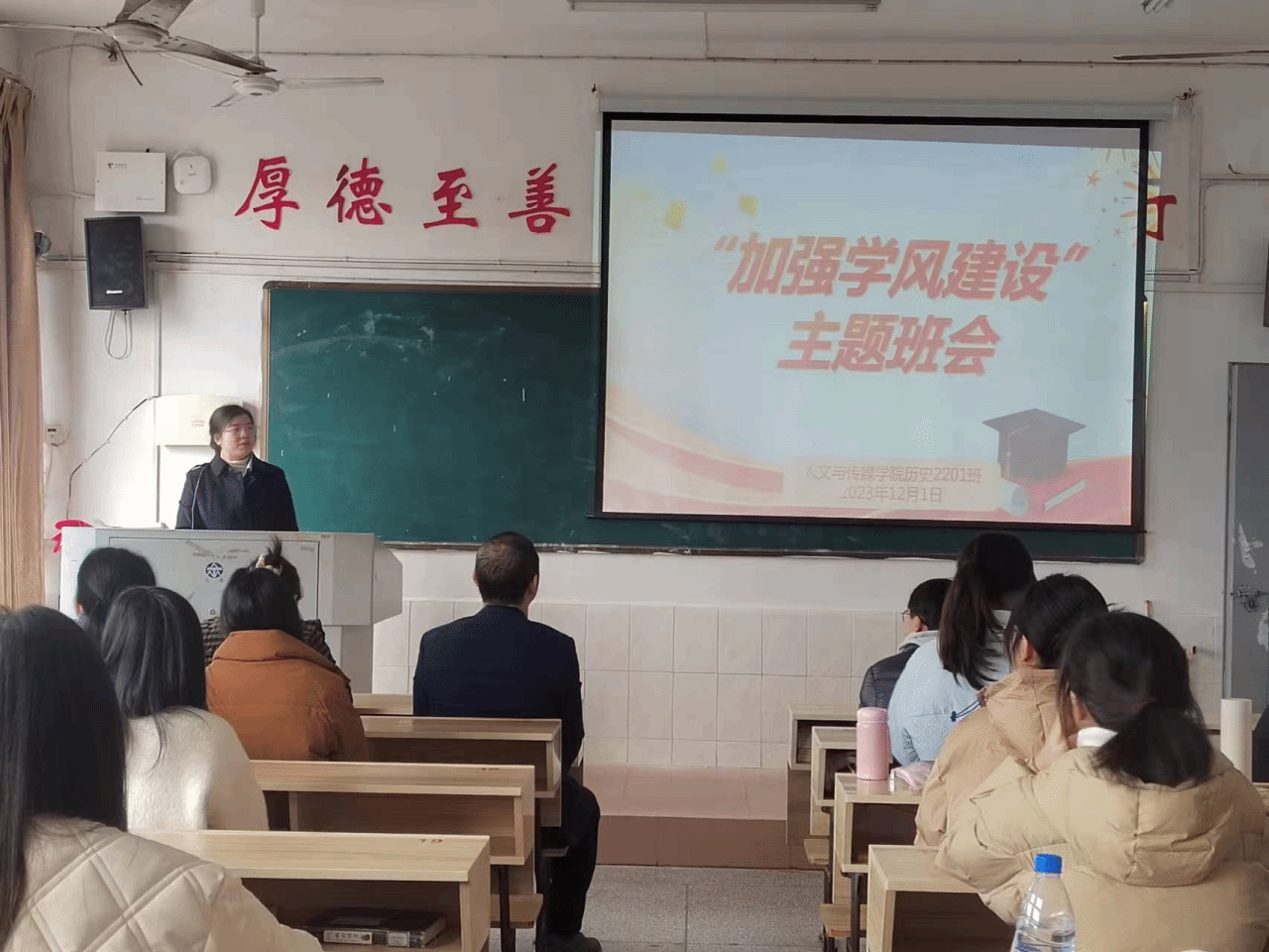 为贯彻落实学校学风建设工作部署,强化学院学风建设,营造良好学习氛围,12月1日,72886必赢欢迎光临22级、23级历史班分别于跬步楼1511、1509开展“加强学风建设”主题班会,班会分别由辅导员尹杰和沈作琳主持,历史教研室主任邓翔、历史学专业负责人黄虎出席此次班会。