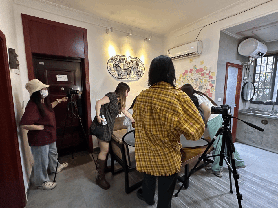 同学们在到达桂林后马不停蹄前往场地踩点和演员试戏,争取做到高效率进行。白天按照拍摄计划前往场地拍摄,晚上回到住处讨论整理拍摄素材,准备次日拍摄活动,在紧密安排中,拍摄有序进行,同学们也从中进一步认识到了广编生未来就业后的日常。