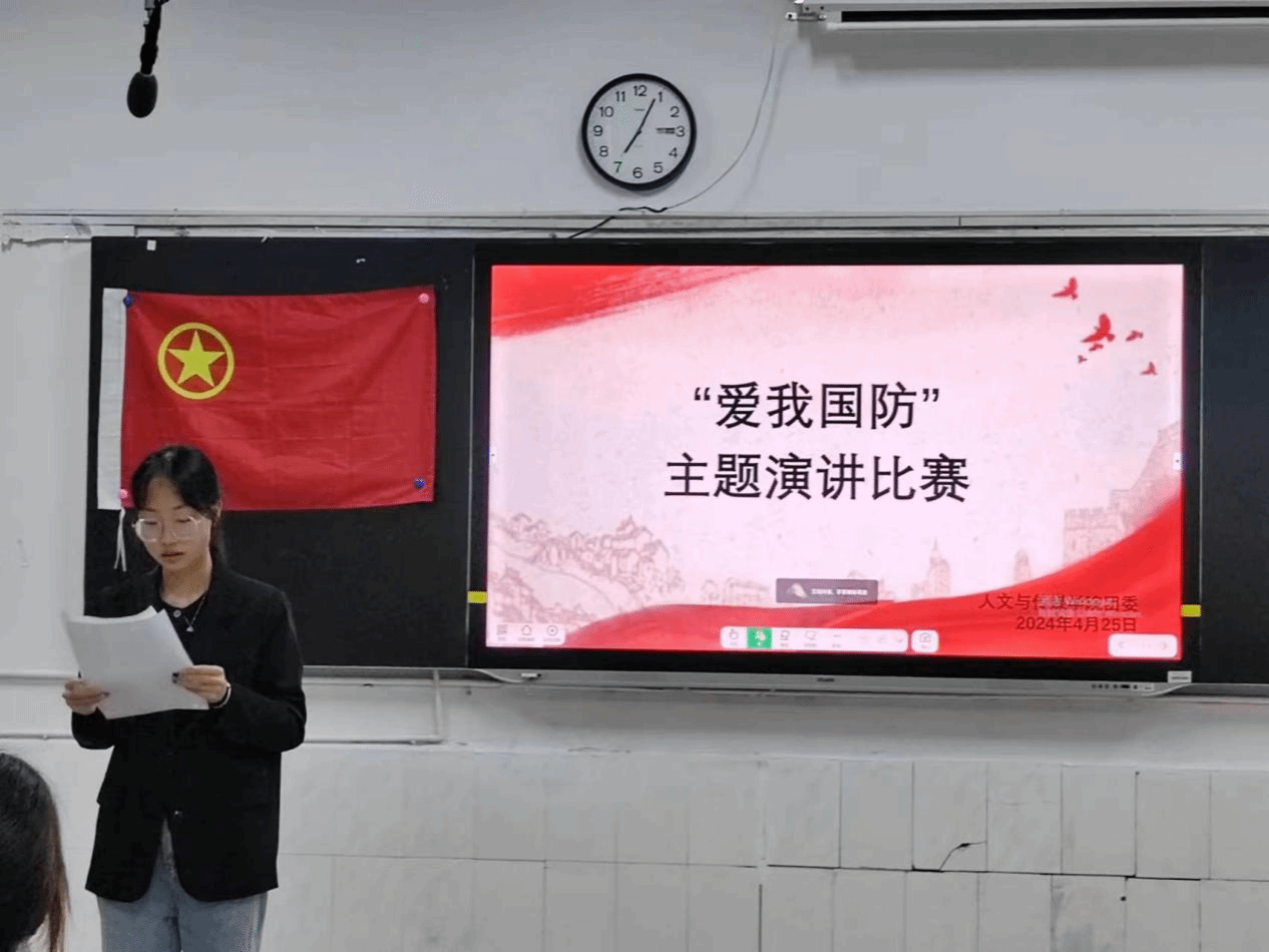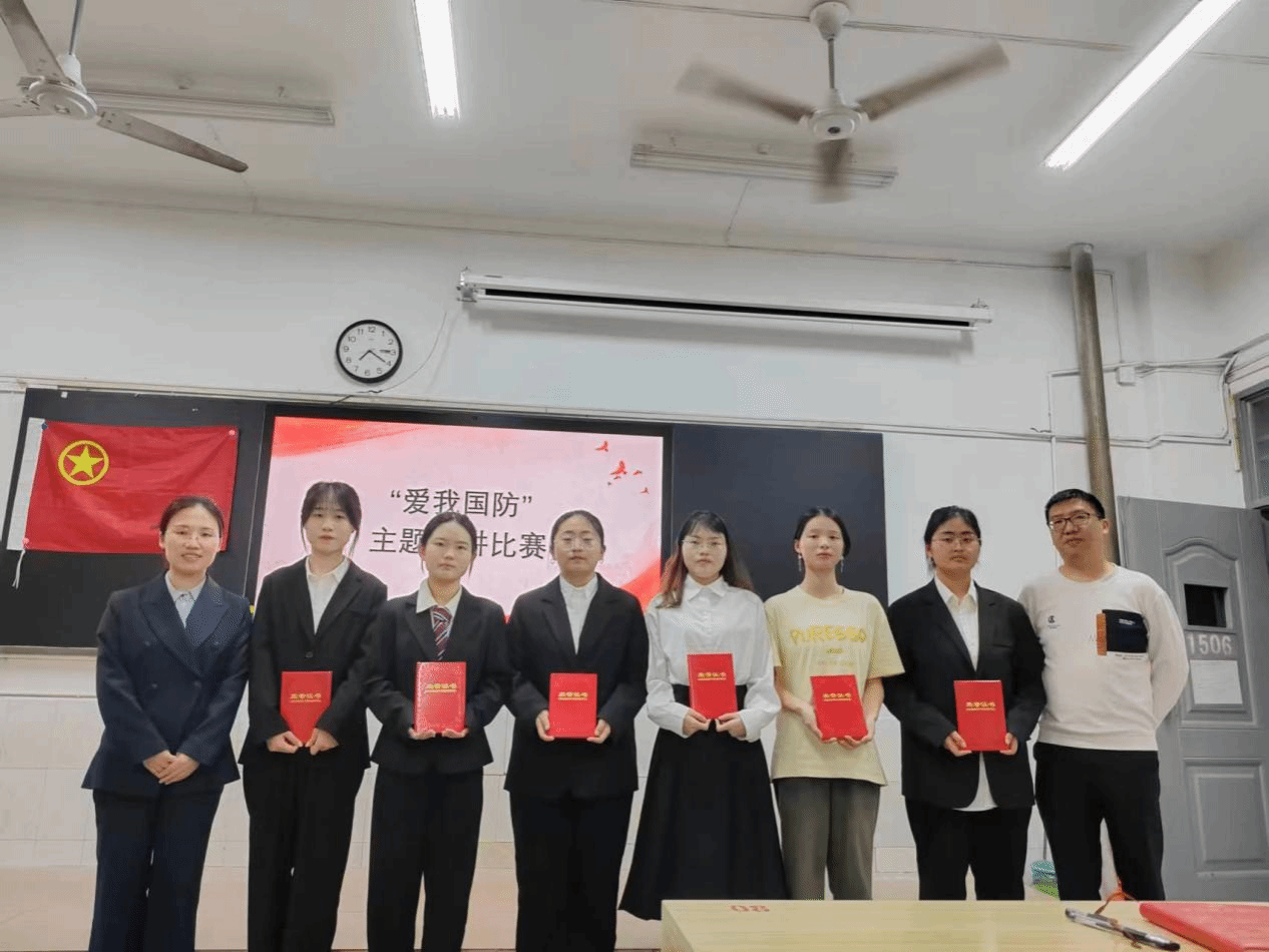 比赛过程中,九名参赛选手紧扣“爱我国防”主题,或结合自身参加军训、军事理论课程的实际情况;或回顾历史,总结过去“有国无防”的经验教训;或讲述新中国成立后我国国防建设的成就,分析当前国家安全局势。他们分别从家国情怀、理想信念、时代要求、责任担当等多个角度和层面展开,以生动的语言、饱满的感情,声情并茂地讲述自己对国防的理解,抒发自己的爱国之情。经过激烈的角逐,刘玉露荣获一等奖,周子琪、洪卫晴获二等奖,胡若兰、汤懿、陈妍霏获三等奖。