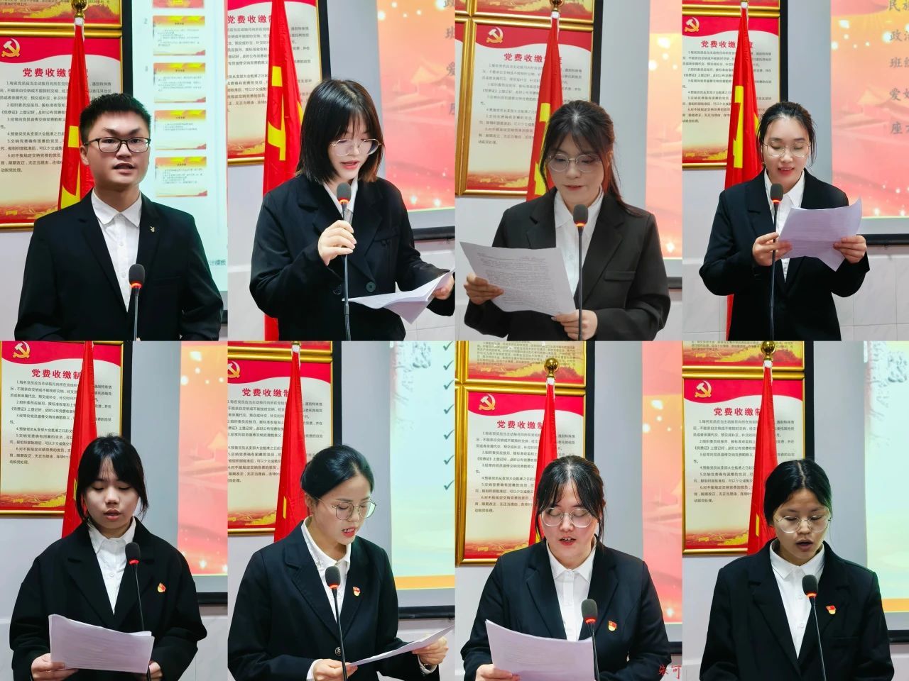 7名发展对象依次宣读自己的入党志愿书,表明自己的入党初心,从思想、学习、工作、生活等方面汇报自成为入党积极分子以来的进步与不足。14名预备党员依次在大会上宣读转正申请书,结合自身实际阐述了这一年预备期对自己的成长意义以及今后努力的方向,并表达了坚定不移跟党走,为共产主义事业奋斗终生的信念。