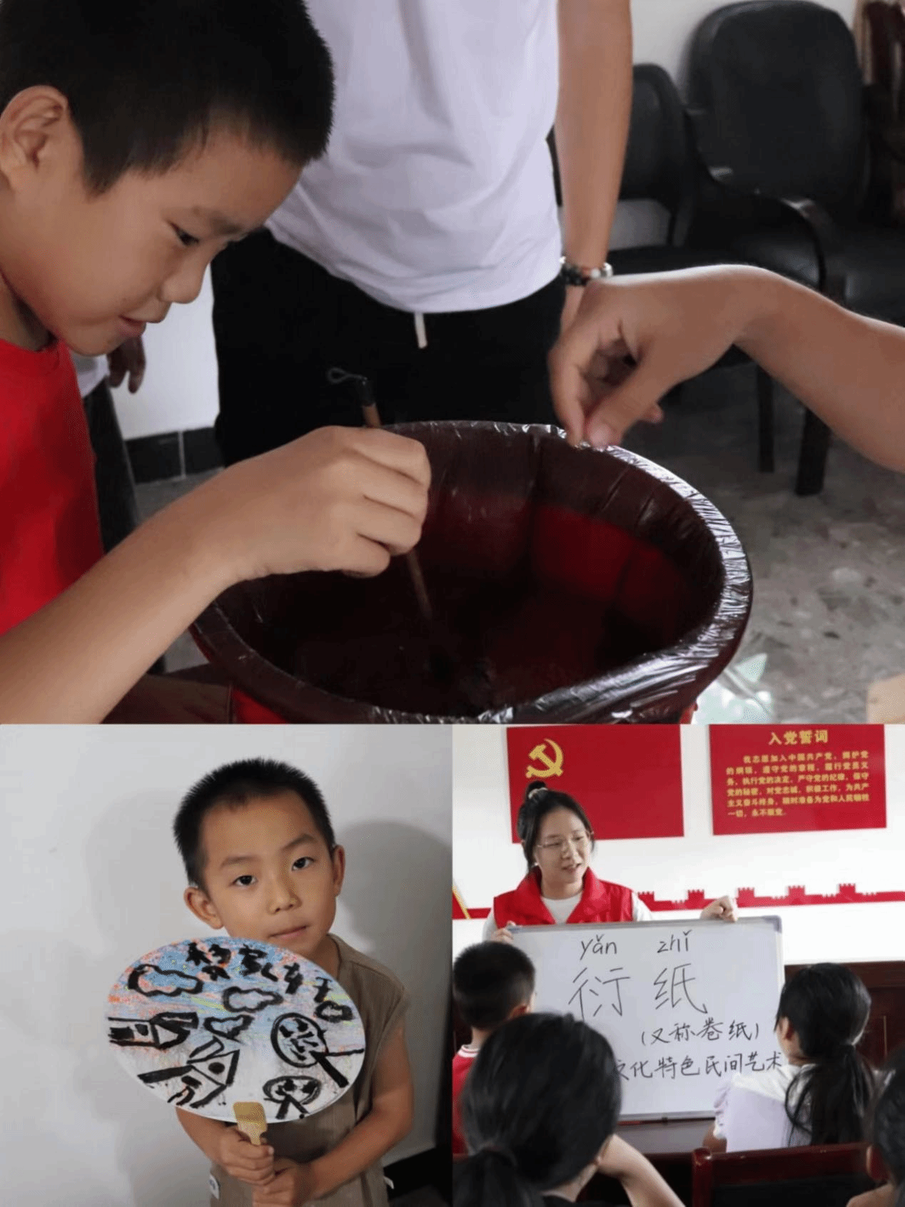 “乡村振兴,既要塑形,也要铸魂。”文化是乡村延续和发展的灵魂所在,也是乡村振兴持续发展的动力之源。衍纸是我国非物质文化艺术宝库中的一种特色民间艺术,志愿者李莉详细介绍了衍纸艺术的起源、发展和制作技巧。孩子们在志愿者的指导下,亲自动手尝试,将纸条卷曲、折叠、拼接,创作出属于自己的独特作品。在制作漆扇前,志愿者讲解了漆扇的制作流程和艺术特点,并让小朋友进行书法练习,在一撇一捺中体会书法的魅力,随后小朋友们用毛笔认真装饰画面,近距离欣赏着漆扇的细腻纹理和绚丽色彩,感受古人的风雅情趣。甲骨文作为古老而神秘的文字,更是引发了大家的浓厚兴趣。志愿者深入浅出地解读了甲骨文的起源、演变和历史价值。通过展示生动的图片和实例,让那些刻在龟甲兽骨上的古老符号重新“活”了起来。以“二十四节气”为主题的传统文化讲解,则将大家带入了四季轮回的自然韵律之中。在了解农耕劳作时,精彩纷呈的习俗凸显,传统文化深深印记。朗朗上口的节气歌萦绕耳畔,每一处对节气的描绘都饱含着孩子们的思索与感慨,这不仅是一次文化的盛宴,更是一次心灵的洗礼。志愿服务团充分发挥普通话在推动乡村精神文明建设方面的积极作用,让参与者们在亲身体验和聆听讲解中,深刻领略到了中华传统文化的独特魅力,增强了孩子们对民族文化的认同感和自豪感。