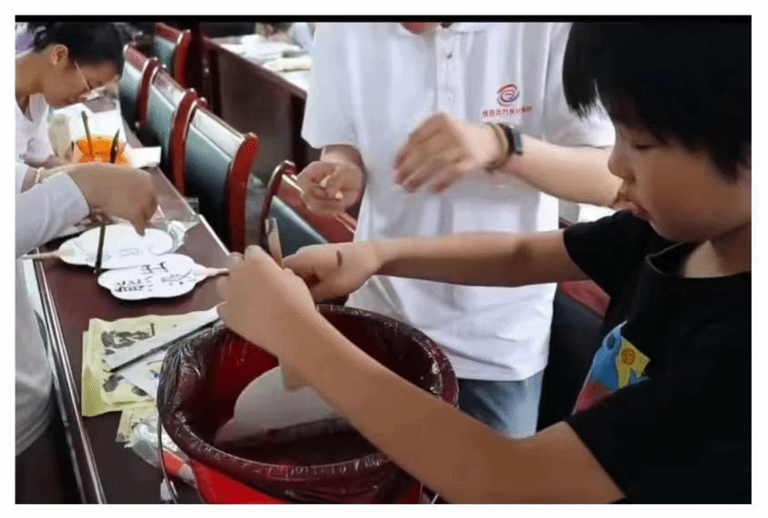漆扇是一种结合传统大漆艺术和现代设计的工艺品,通过大漆的特殊开色过程展现出不同的色彩变化和艺术效果。在志愿者的带领下,小朋友将绘制好的扇子浸入彩漆中,在经过入水、摇晃、旋转、出水等一系列步骤后,制作出了各种纹样的漆扇。衍纸艺术是以专用的工具将细长的纸条卷起来,成为一个个小“零件”,再组合样式复杂、形状各有不同的“零件”来创作的艺术形式。小朋友拿着衍纸条,通过巧妙的卷、捏、拼、贴等步骤,将五彩的衍纸条逐渐演变成一幅幅精美绝伦、充满创意的衍纸作品。各种色彩的碰撞是一场心灵与视觉的盛宴。当不同的色彩交织在一起,不仅仅是物理上的混合,更是情感与个性的融合,为未成年人创造了一个充满无限可能与创意的空间。通过色彩的碰撞与融合,孩子们逐渐认识到自己的独特之处,并勇敢地展现自我,活出真我风采。