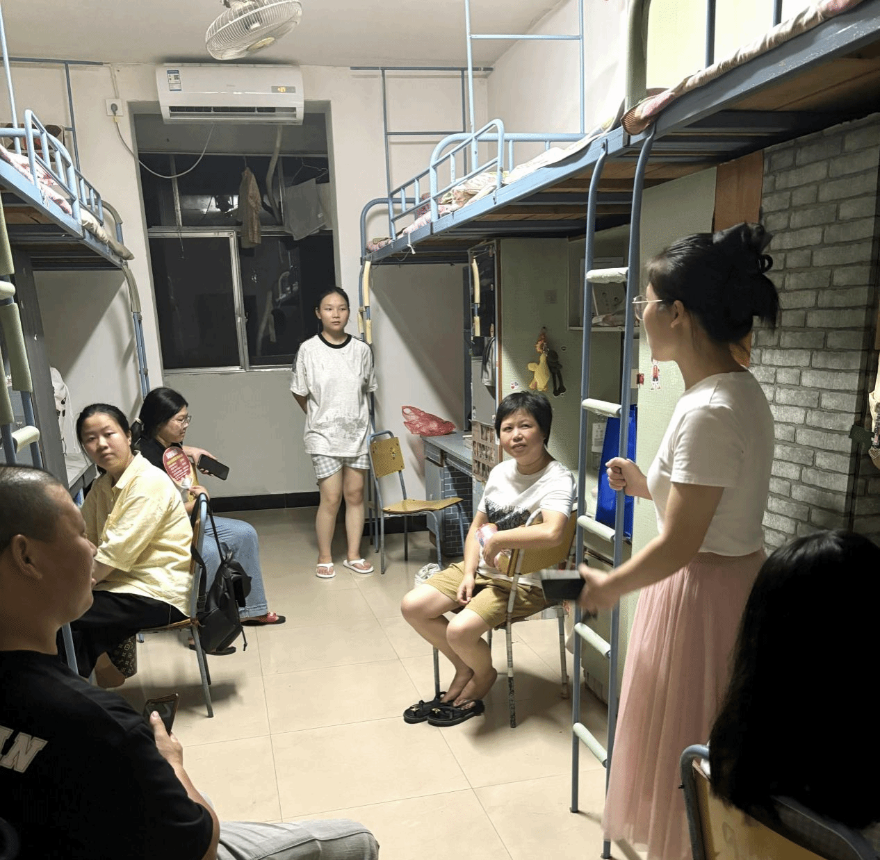 在走访过程中,尹杰热心询问新生的住宿情况和生活问题,向新生们表达了亲切的关心与问候,并耐心回答了同学们提出的相关问题。在下寝过程中,尹杰还遇见了尚未离开的新生家长。她不仅耐心倾听了家长的担忧和疑虑,还热情地为他们介绍了学院的基本情况,包括教学设施、师资力量、校园生活等,让新生家长更加放心。为了确保学生的安全,尹杰还特别强调了寝室内的用水用电等安全问题。她提醒学生不能在寝室内使用违规电器,要注意个人和集体的安全,共同营造一个和谐、安全、稳定的校园环境。