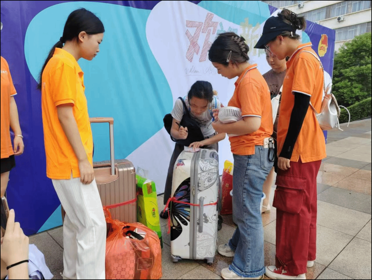 在宿舍区,老生们化身为“生活向导”,耐心细致地为新生指引宿舍位置,协助他们搬运行李,并详细介绍宿舍的各项设施使用方法及注意事项。同时,他们还结合自身经验,向新生分享了在校期间的生活心得和学习方法,帮助新生更好地规划大学生活,让宿舍成为他们第二个温暖的家。