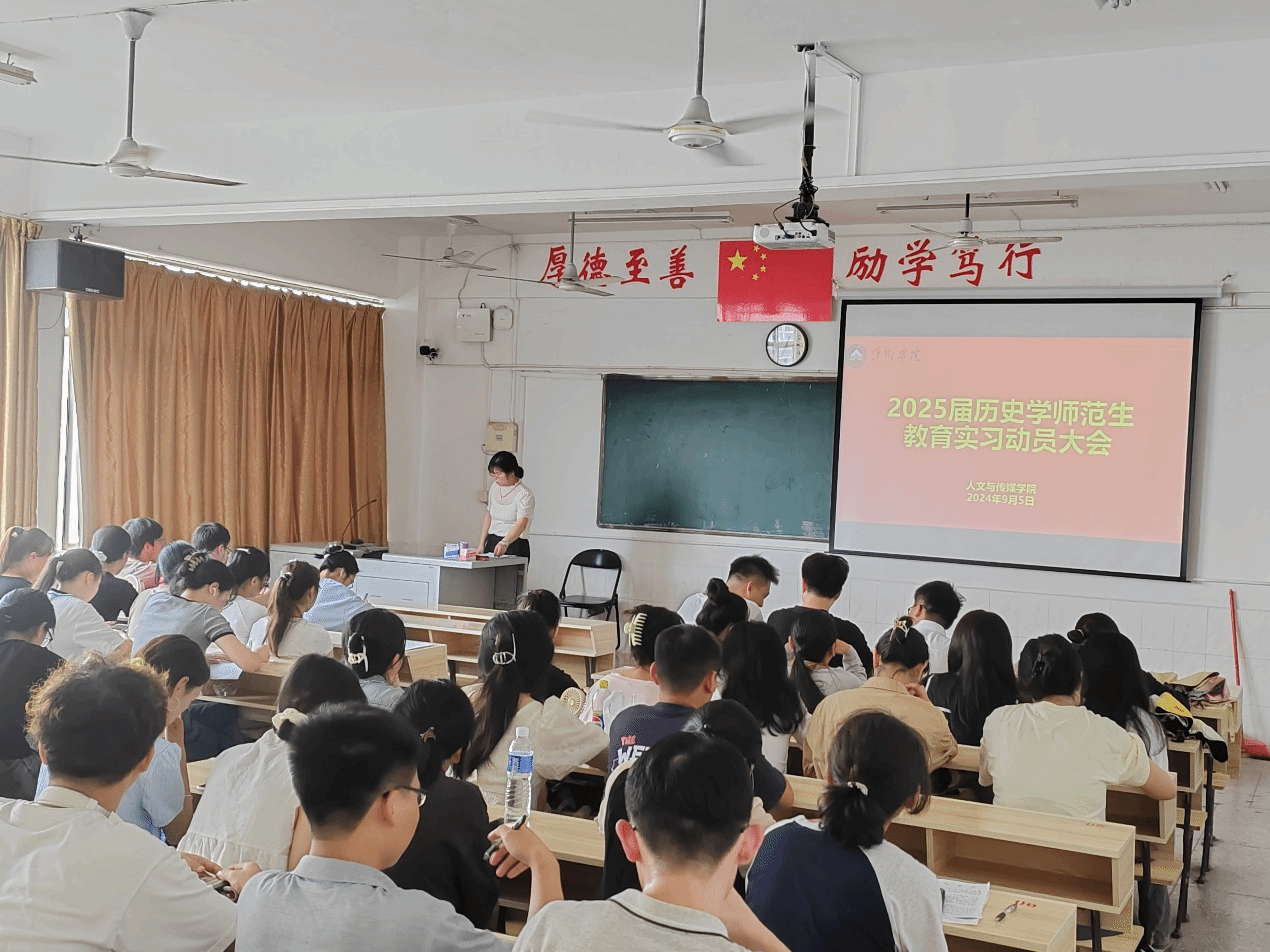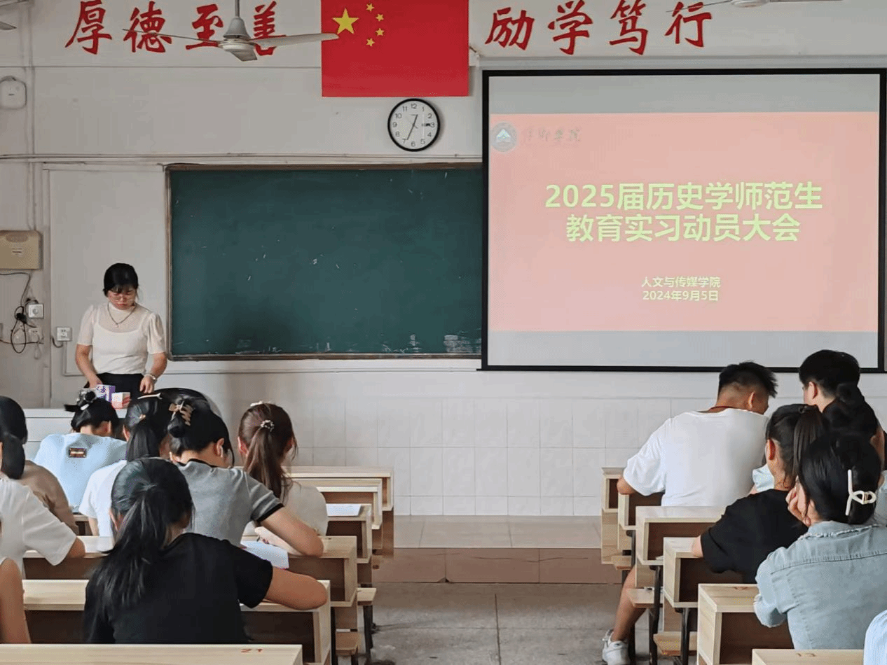 为增进同学们对教育实习的认识,端正实习态度,9月5日中午,72886必赢欢迎光临在跬步楼1410教室举行2025届历史学师范生教育实习动员大会。本次会议由历史学教研室主任邓翔主持,教师王淼华出席,21级历史学专业全体学生共同参会。