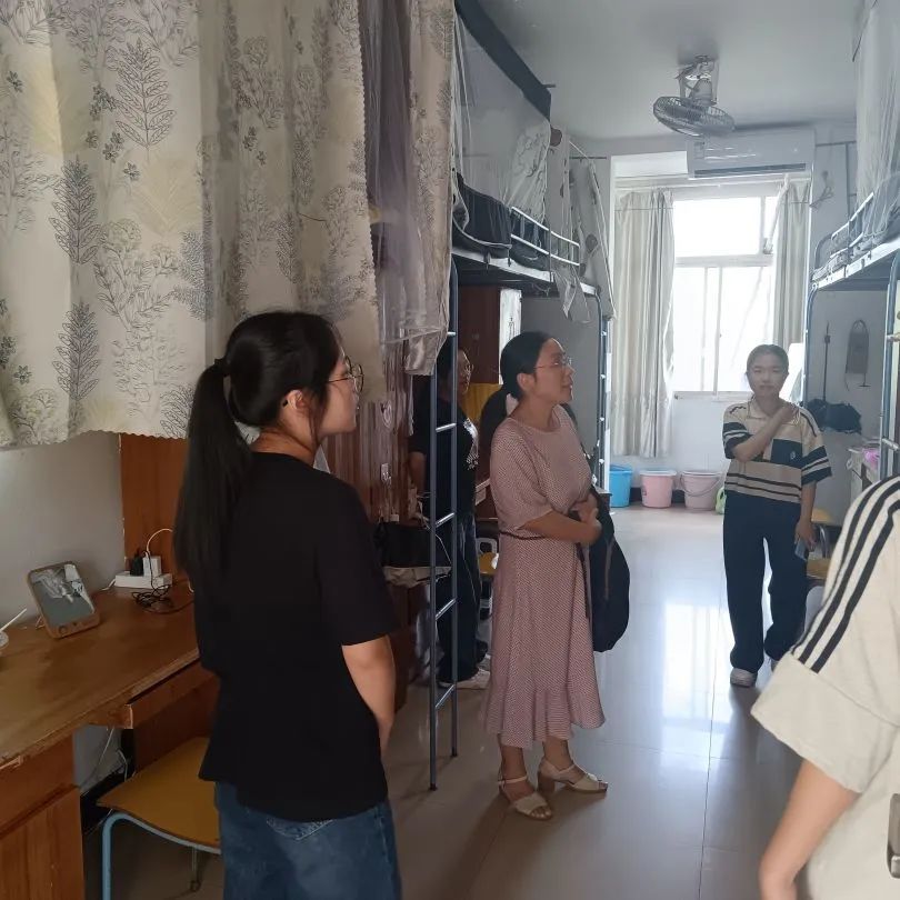 走访过程中,王淑清在与新生交谈中,亲切询问大家来自哪里,对新环境是否习惯,对学校食宿是否满意等生活问题。王淑清建议新生们保持良好作息和饮食习惯,加强体育锻炼,保持积极健康、乐观向上的生活态度,当好自己健康的第一责任人。罗岚清对学生宿舍的安全隐患进行逐一排查,嘱咐新生们要遵守学校的各项规章制度,注意寝室用水用电安全,谨防网络诈骗,确保人身财产安全。罗岚清鼓励新生回归学习本位,合理安排新学期学习计划,带着理想和目标开启人生新阶段。