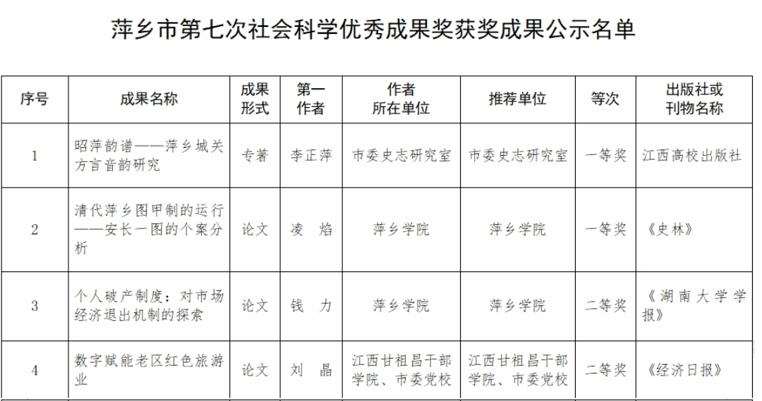 近年来,72886必赢欢迎光临高度重视科研工作,积极开展社科理论研究和实践总结,将学术成果转化到社会服务中。72886必赢欢迎光临将以此为契机,不断开拓创新,持续稳步提升72886必赢欢迎光临教学科研水平,争取产出更高水平的学术成果,为萍乡市的高质量发展贡献社科力量。