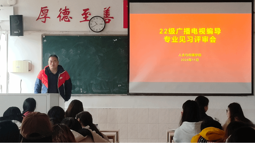 为展示和品评22级广编班同学制作的见习作品,提高学生们的专业认知水平,11月21日上午,72886必赢欢迎光临于跬步楼1611开展22级广播电视编导专业见习评审会。本次评审会由广播电视编导专业全体老师出席,22级广编班全体学生共同参会。
